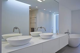 Hou je van minimalistische badkamers? Dan zal deze badkamer vast een inspiratiebron voor je zijn. 'Eenvoud siert' is hier echt van toepassing. Weinig accessoires en gebruik van lichte kleuren zorgen ervoor dat deze badkamer een rustig uiterlijk krijgt. Een plek waar je zonder afleiding kunt ontspannen.