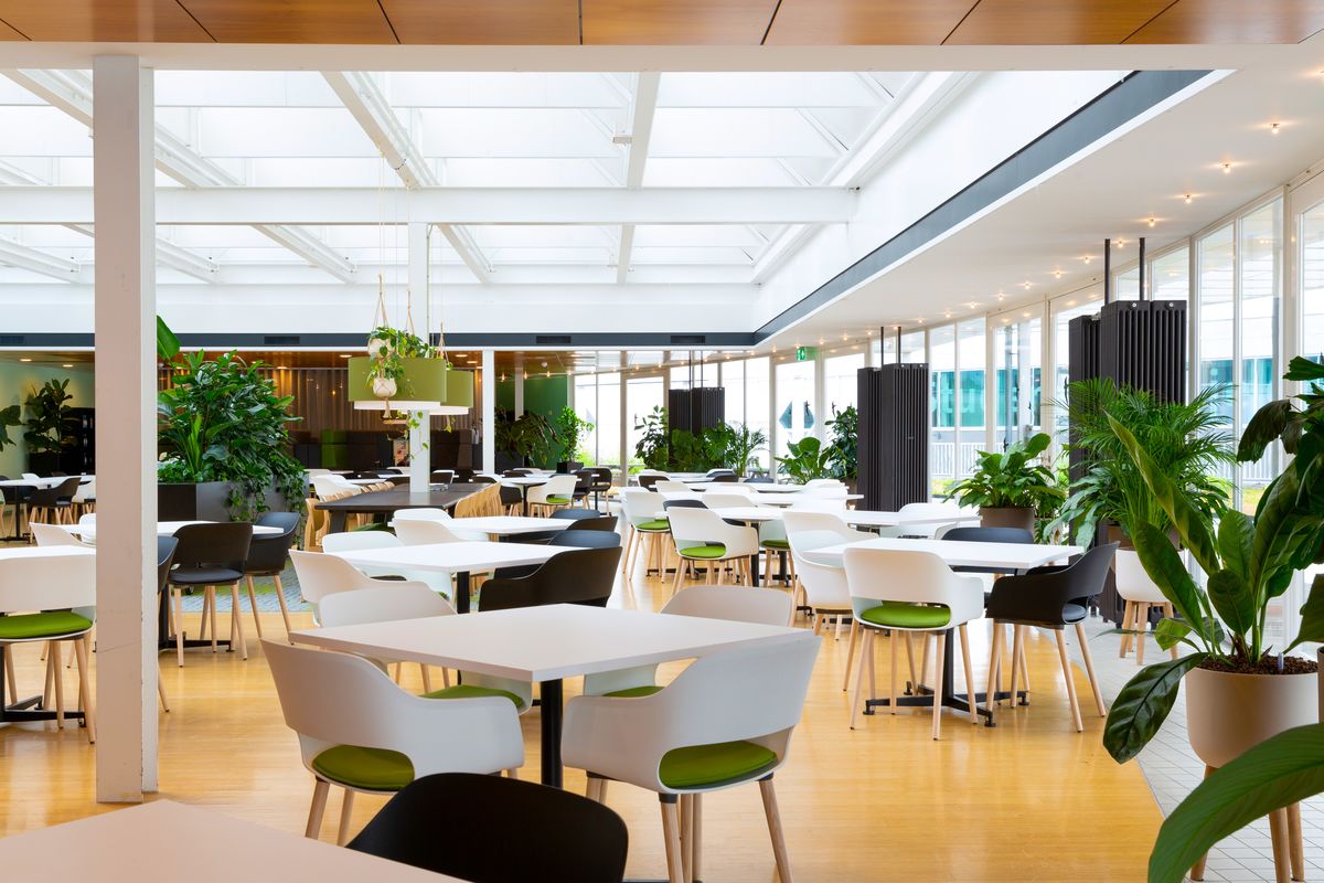 Geïnspireerd door het thema ‘binnen wordt buiten’ heeft het bedrijfsrestaurant van het stadhuis van Almere een complete metamorfose ondergaan.