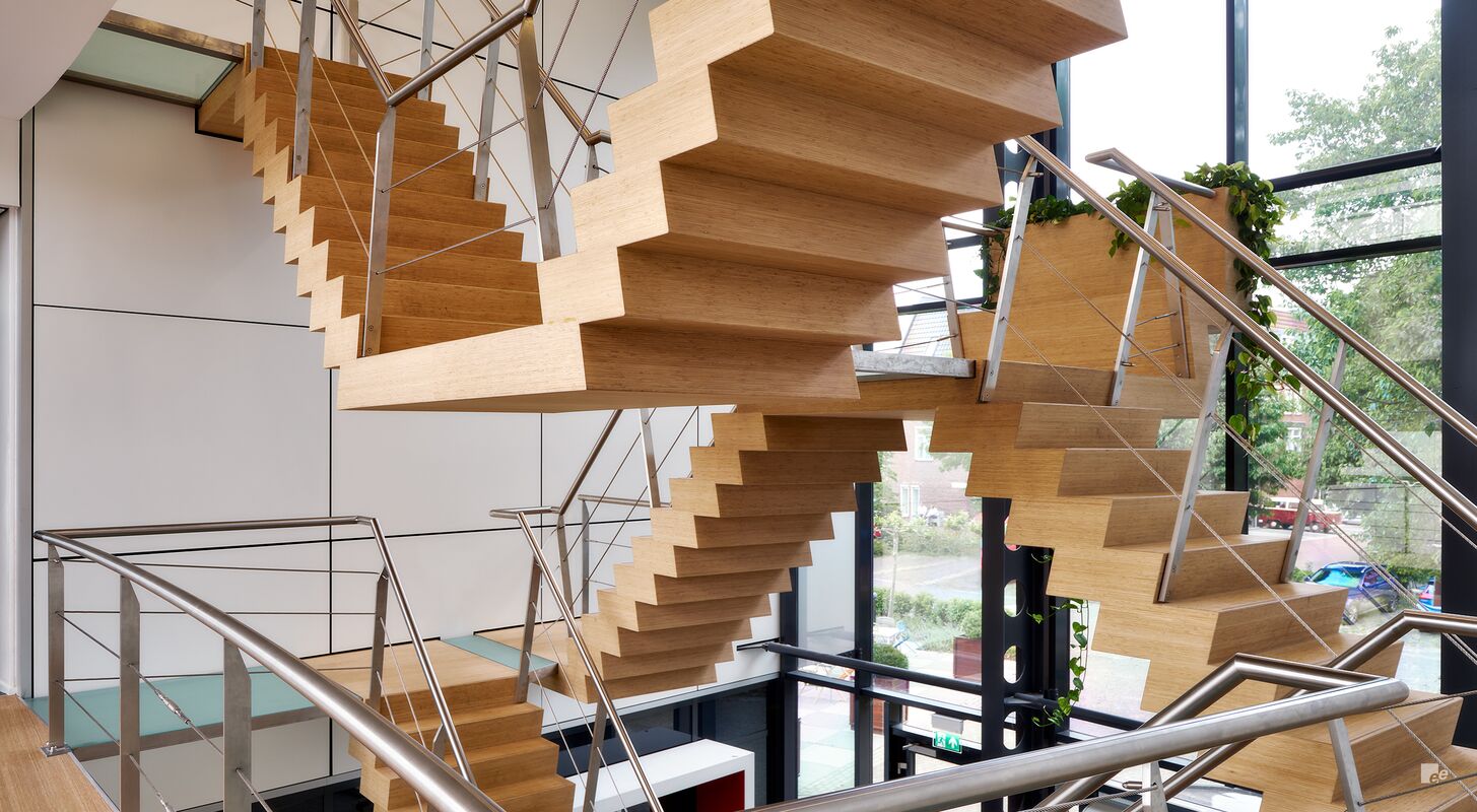 Lange gangen begrensd door binnenmuren in het gebouw zijn vervangen door een veel meer open werkomgeving. De betonnen hoofdtrap is vervangen door een eigentijdse trap door EeStairs. In Ridderkerk is de trap ter plekke afgewerkt met hout en bamboe. Deze manier van werken is een stuk efficiënter, verbetert de kwaliteit van het eindproduct en vergemakkelijkt de installatie. Als gevolg van de modernisering profiteren het gebouw en zijn bewoners nu van een meer lichte en open werkomgeving.