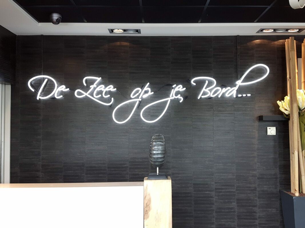 Een visrestaurant in Den Bosch heeft gekozen voor een passende quote om meer sfeer toe te voegen aan het interieur.