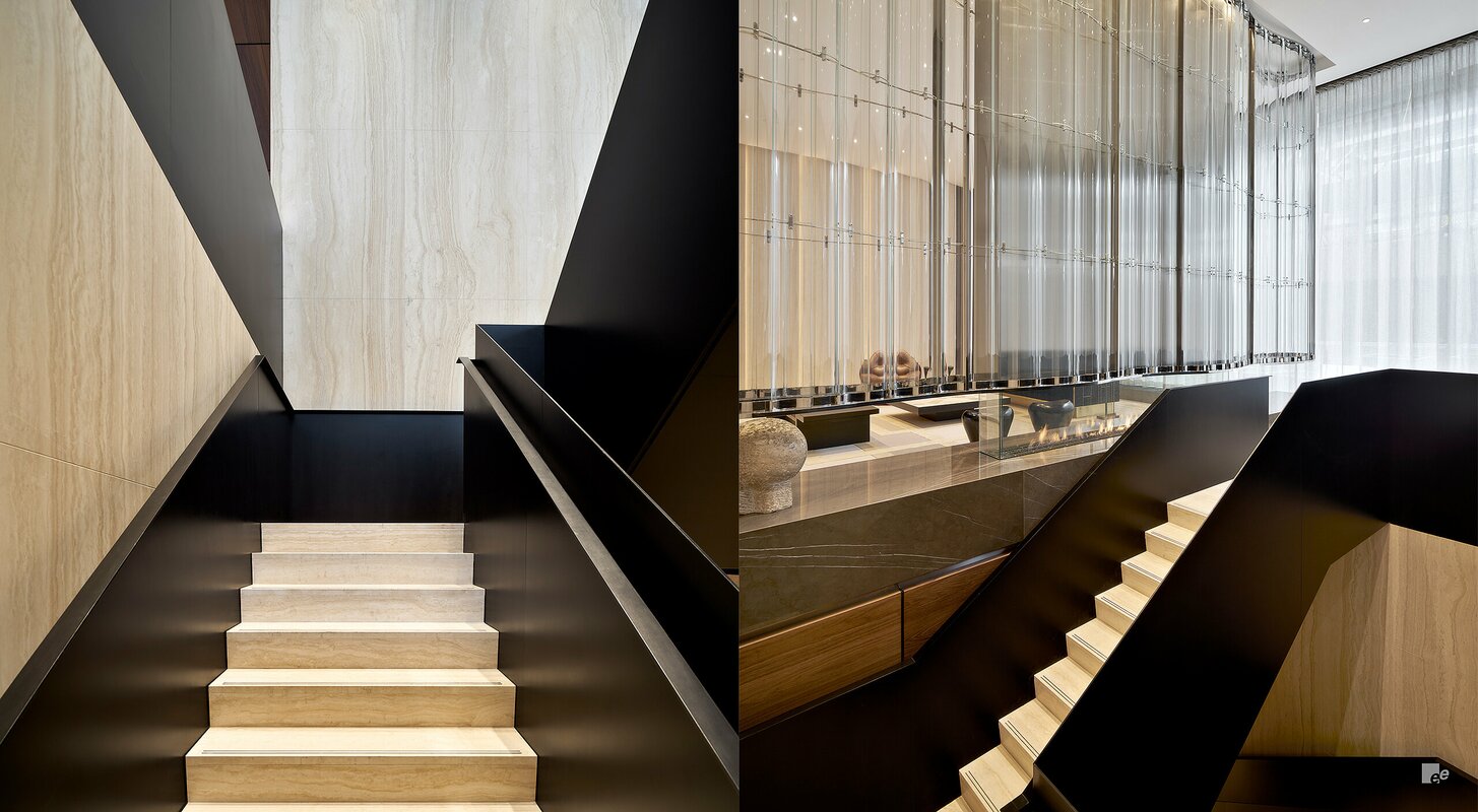 Deze trap komt uit de lobby van de 15 Hudson Yards Tower in New York, ontworpen door de beroemde Amerikaanse architecten Diller Scofidio + Renfro.