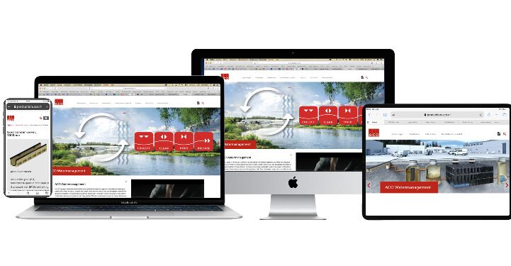 De nieuwe ACO website werd ontwikkeld met behulp van de verkregen waardevolle feedback na het lanceren van de Duitse website. De website informeert en adviseert de gebruiker over de verschillende watermanagementoplossingen en begeleid de bezoekers vanaf de prille beginfase van het project en informeert over alle mogelijkheden. Het resultaat spreekt aan door een aangenaam visueel concept en een intuïtieve navigatie.