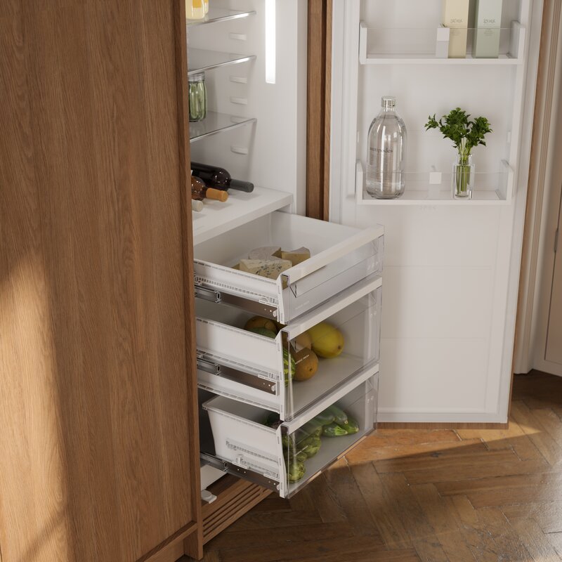 Naast technologie speelt esthetiek een belangrijke rol. De 8-serie koelkasten en vriezers kenmerken zich door een strak interieur met glazen plateaus en glazen deurbakken, gecombineerd met heldere LED-verlichting aan de zijkanten. Dit zorgt voor optimaal zicht op ieder niveau en een frisse, overzichtelijke uitstraling zodra je de deur opent.