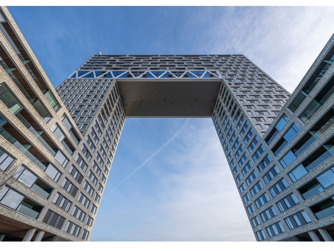 In de bovenste lagen van het complex, het zogenoemde bruggedeelte, hebben wij 68 kozijn-deurcombinaties geleverd. Dit de deuren waarvan de hoogst haalbare functionaliteit wordt verwacht. Bewoners van deze high-end appartementen hebben de optie hun toegangsdeuren op afstand te bedienen. In samenwerking met diverse partijen -waaronder de aannemer en elektricien- zijn deze deuren tijdens productie dusdanig voorbewerkt dat een compleet, op afstand werkend camera- en toegangssysteem kan worden aangebracht.