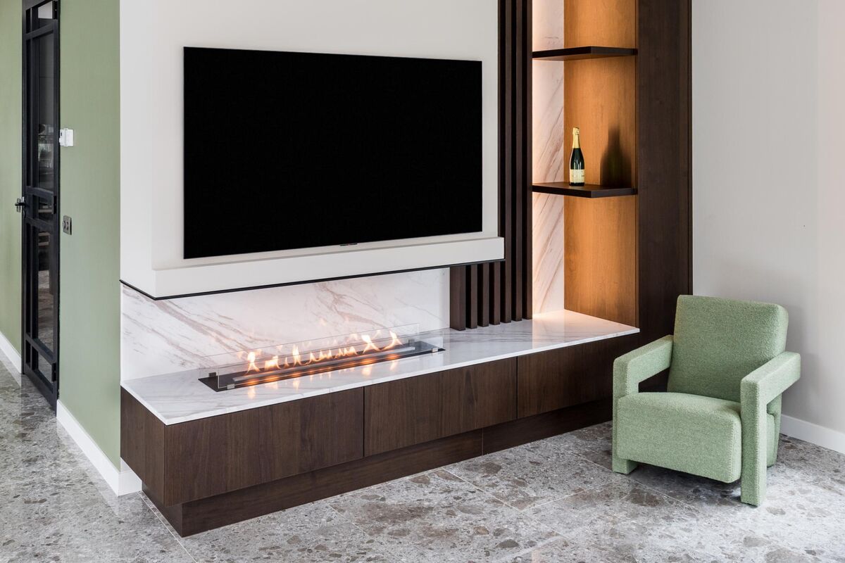 ‘We werken veel in Amsterdam. Een stedelijk gebied dat wordt gekenmerkt door flink wat hoogbouw, wat de vraag naar elektrische en biohaarden stimuleert. Zeker omdat op al deze hoogbouw zonnepanelen worden geplaatst, waardoor ruimte voor eventuele afvoerkanalen definitief van de baan is. Wij hebben nog geen elektrische haard gevonden die dezelfde ontwerpvrijheid en vuurbeleving geeft. Derhalve is het wat ons betreft Decoflame dat de klok slaat. Met Decoflame ben je zeker van prachtige vlammen en comfortabele warmte. Bovendien geven de haarden ook informatie terug. Over de hoeveelheid aanwezig brandstof bijvoorbeeld en de bijbehorende branduren per instellingsniveau. We werken veel samen met architecten en interieurprofessionals. Zij krijgen van ons standaard technische tekeningen met exacte maatvoeringen en materiaaladviezen. Wij zorgen uiteraard voor de installatie van de haard. Zo realiseren we samen de mooiste interieurs.’