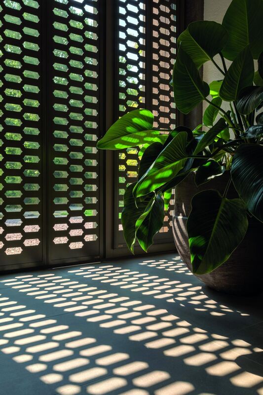 De verschillende ontwerpen van Osiris Hertman zorgen voor een spannend spel van schaduw en licht in de woning. Het licht weerkaatst niet eerst op de lamellen, maar valt rechtstreeks door de sleuven de kamer in. Het resultaat: een fascinerend lichtspel, bij elk van de prachtige designs weer op een andere manier. Osiris: ‘De zeven patronen zijn allemaal anders en geven elke ruimte een volstrekt verschillende sfeer; warm, sensueel, speels en krachtig. Je kunt enorm variëren met de lichtintensiteit door de shutters meer of juist iets minder open te zetten en een drukker of rustiger patroon te maken. Fractions zijn compacte aluminium shutters en bieden de mogelijkheid te spelen tussen open en dicht en de gewenste lichtintensiteit in de ruimte te bepalen; ze vormen zo een ware dans van bewegende patronen, licht en schaduw.’