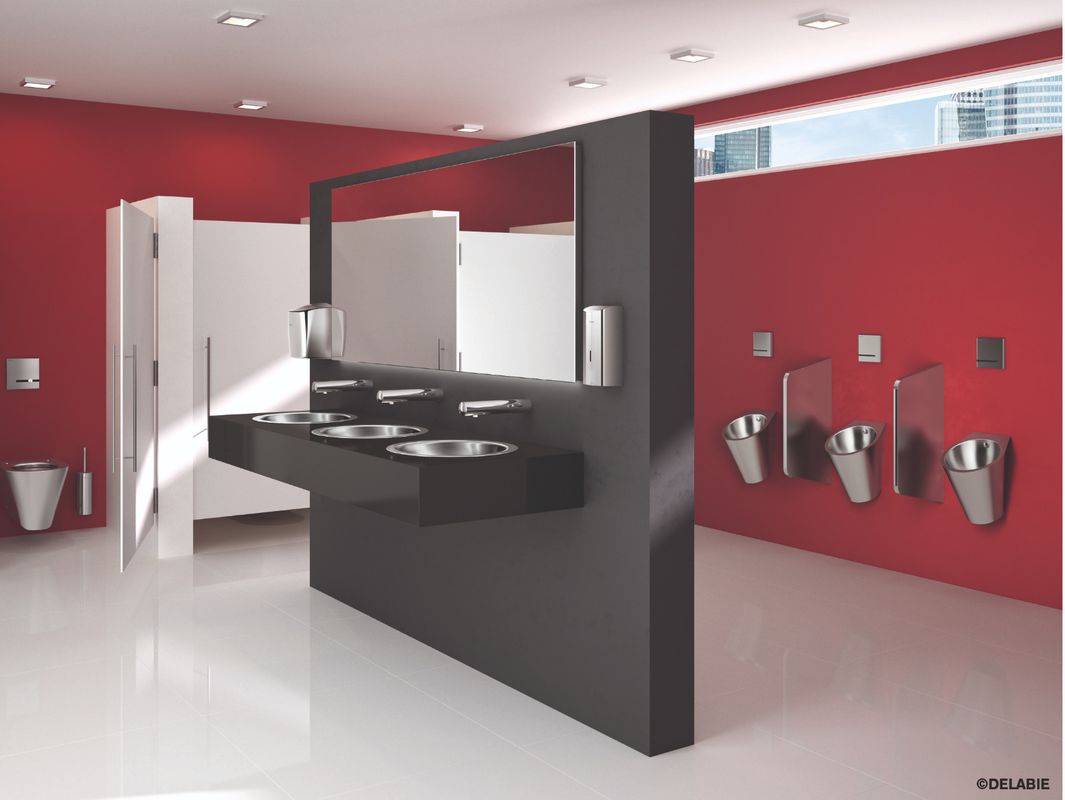Er wordt heel wat vaardigheid en verbeelding aan de dag gelegd bij het ontwerpen van het sanitair in publieke ruimten. Licht- en geluidseffecten worden niet geschuwd, geurneutralisatoren en parfums worden gebruik. Elk detail is onderhavig aan een studie om alle zintuigen te prikkelen en een sfeer van welzijn en hygiëne te creëren waarin de gebruiker met plezier vertoeft. En dat kan met de sanitaire voorzieningen in roestvrij staal van Delabie. Proper en degelijk. Deze sanitaire toestellen zijn bestand tegen zware lasten en chemische producten, en zijn slijtvast en krasbestendig. Ze zijn speciaal ontworpen voor intensief gebruik en zijn aan extreme weerstandstests onderworpen.