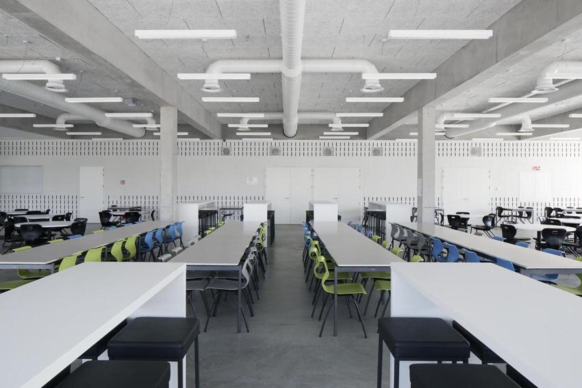In zowel de kantine als de ‘performance’ room van de Kunst Academie in Hasselt zorgen de akoestische blokken voor een geweldige geluidservaring en voor een stoere, industrieel chique uitstraling. Zij geven een boost aan het succes van elke uitvoering die in de ruimte wordt gehouden. In de ontvangsthal van het innovatiecentrum in Montpellier zorgen Soundblox in antracietgrijs met een witte voeg voor een opvallend contrast en een gedurfde design.