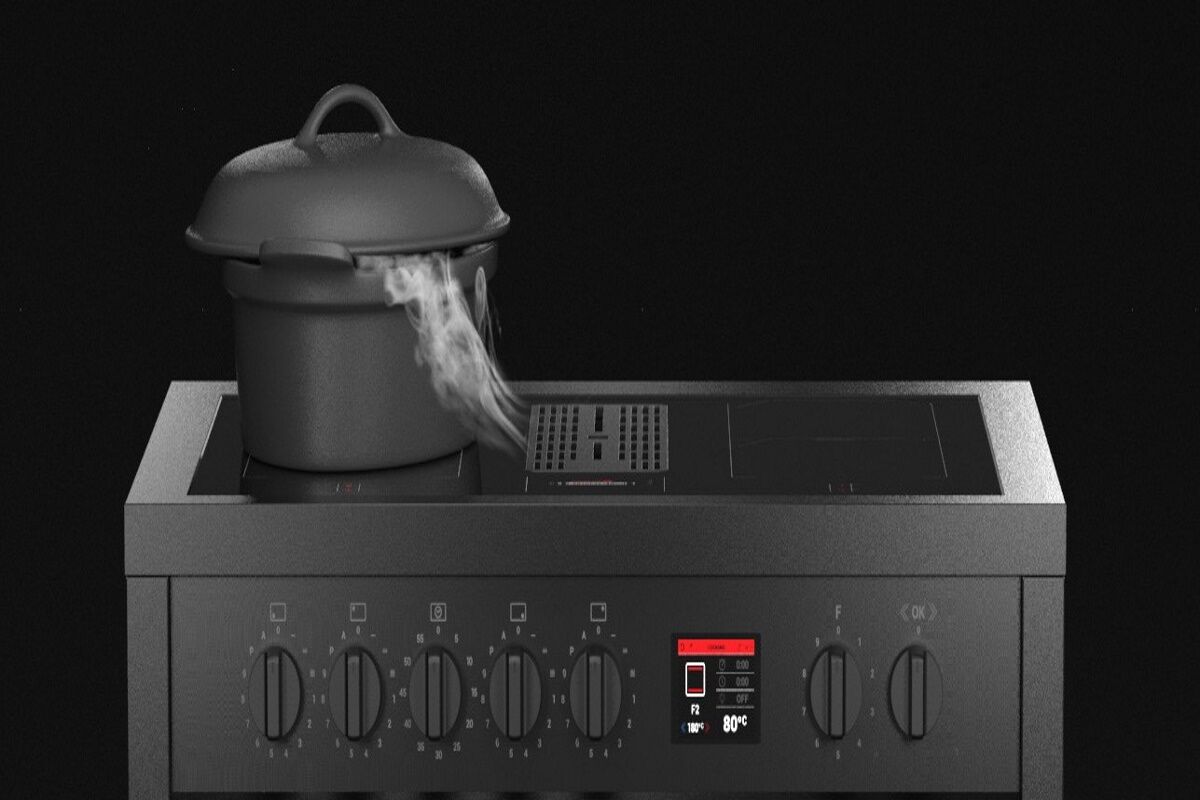 De STEEL Mistral is het eerste fornuis ter wereld, waarin een oven, inductiekookplaat en kookveldafzuiging gecombineerd wordt.