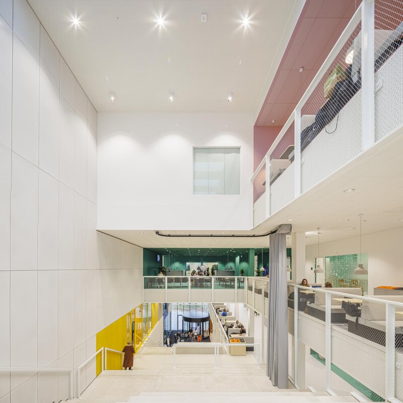 'Bij Ecophon begrijpen we dat goede akoestiek meer is dan alleen geluid,' vertelt William Janssen, Area sales manager bij Ecophon. 'Hetgaat om het creëren van omgevingen waar mensen zich goed voelen en optimaal kunnen presteren. Daarom hanteren we in elke situatie een soundscape-benadering waarbij we niet alleen storende geluiden verminderen, maar ook een akoestische omgeving creëren die natuurlijk en plezierig aanvoelt. Daarnaast streven we naar een positieve visuele ervaring, het oog wil immers ook wat.'