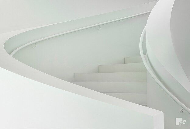 We hebben honderden trappen gemaakt en geïnstalleerd. Maar we zijn ook erg geïnteresseerd in designideeën - innovaties die onze klanten aanmoedigen om gedurfd te denken. Hier is een ontwerp uit ons EeLab - een trap met een spiegelend effect. De manier waarop de glazen balustrades overgaan in witte stalen balustrades is volgens ons zeer uniek door het contrast tussen de twee materialen.