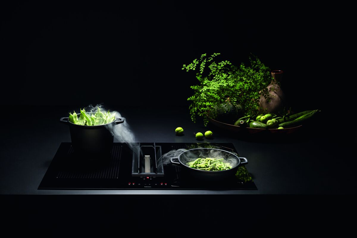 Het assortiment anti-condensatiekappen is uitgebreid met afzuigkap Plane No-Drop, die ideaal is voor een uitstekende zuigkracht, zonder druppel en condensatie. En dankzij twee ledstrips wordt de kookplaat mooi verlicht.