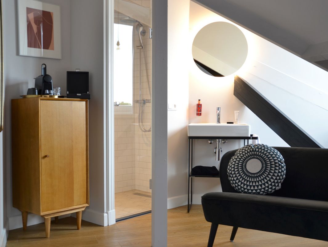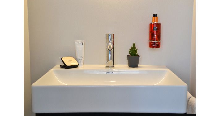 De badkamers werden voorzien van de iconisch wastafel DuraSquare van de Duitse fabrikant Duravit. Durasquare is vervaardigd uit DuraCeram®. Dit keramische materiaal maakt het mogelijk om wastafels met buitengewoon dunne randen te creëren. Het zwarte onderstel in combinatie met het witte keramiek zorgen ervoor dat het een echte blikvanger in de mooie ingerichte badkamer is. Ook voor het toilet koos men voor Duravit, het Durastyle Basic wandcloset.