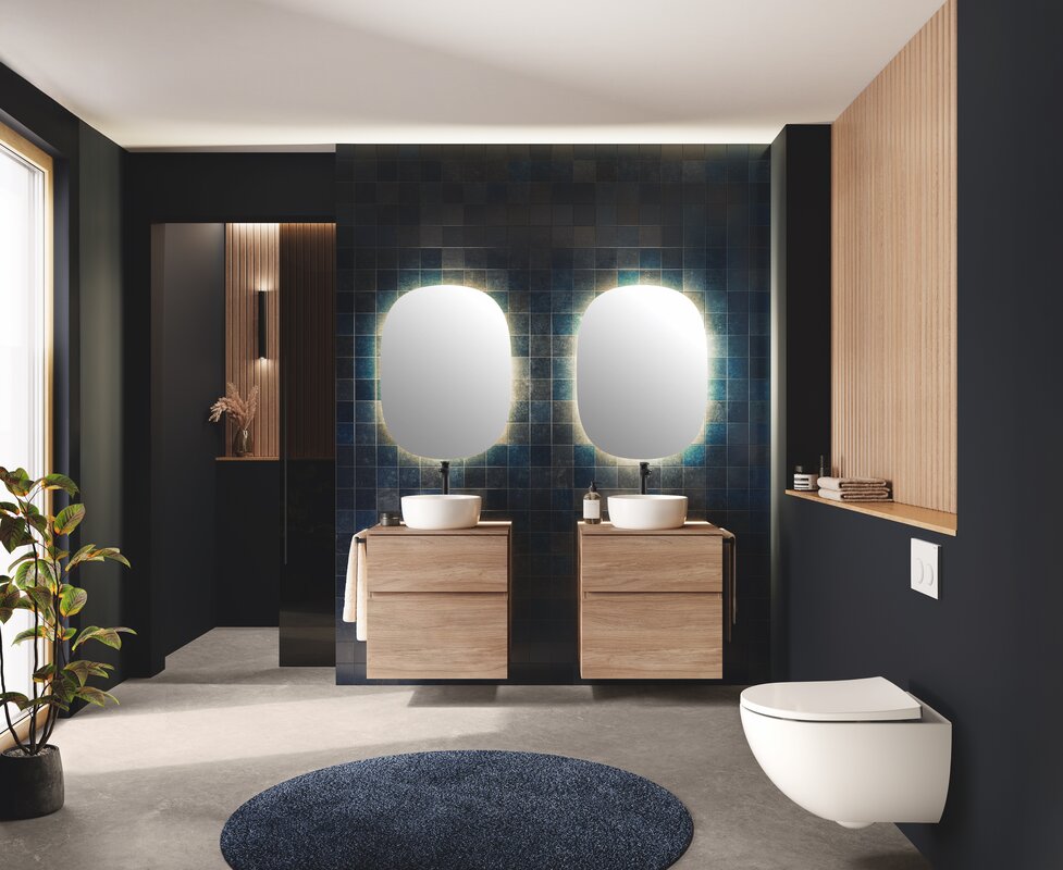 De vormentaal blijft daarbij consequent: afgerond waar het kan, helder en strak waar het moet. Wastafels met vloeiende binnenkommen en slanke randen, aangevuld met hoekige, ronde of elliptische opzetwastafels, bieden een uitgebalanceerde keuze in vorm en uitstraling. Het resultaat is een badkamer die zowel zacht als uitgesproken kan aanvoelen, afhankelijk van de gekozen samenstelling.