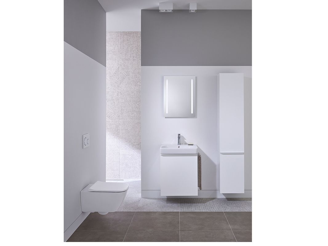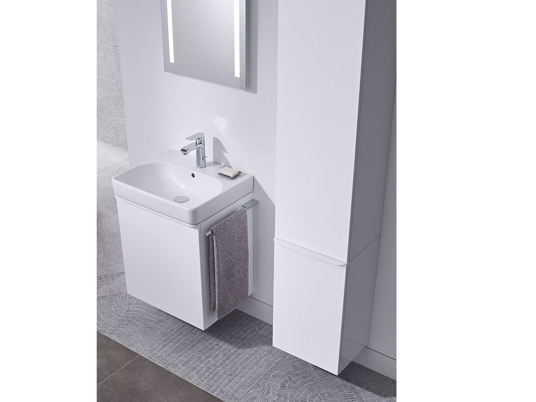 “De licht afgeronde handgrepen zorgen voor een naadloze en harmonieuze overgang van de onderkast naar de wastafel. Ze vormen een perfecte eenheid met de smalle randen van het keramiek. We hebben veel aandacht besteed aan creatieve ontwerpvrijheid met veelzijdige combinatiemogelijkheden," aldus Geberit.