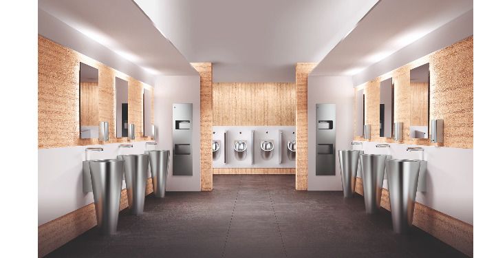 Niet enkel de kraan maar ook de zeepdispenser, papieren handdoekverdeler en vuilnisbak moeten het intensief gruik weerstaan. Openbare toiletten hebben accessoires nodig die bestand zijn tegen regelmatige schoonmaakbeurten en die even duurzaam en betrouwbaar zijn. Het niet-poreuze, gladde oppervlak en de bacteriostatische eigenschappen maken roestvrij staal het ideale materiaal voor sanitaire voorzieningen: gemakkelijk te reinigen, met minder schoonmaakmiddel, en na het reinigen is de retentiegraad van bacteriën, ziektekiemen en vuil tot 20 keer lager dan bij andere materialen zoals glas of kunststof.