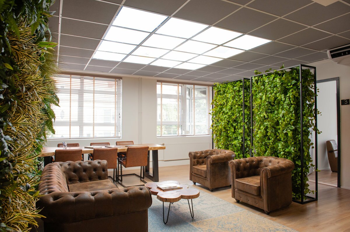 Psycholoog Nederland heeft door Nederland een dertiental vestigingen. Voor de wachtkamer op de locatie in Amsterdam hebben wij een Groene Wand Custom gemaakt, evenals twee groene dividers en een aantal losse bakken met kunstbeplanting. Verder heeft elke spreekkamer een mooie frisse Lenteboom gekregen en in de patio staat een supermooie roze bloesemboom.