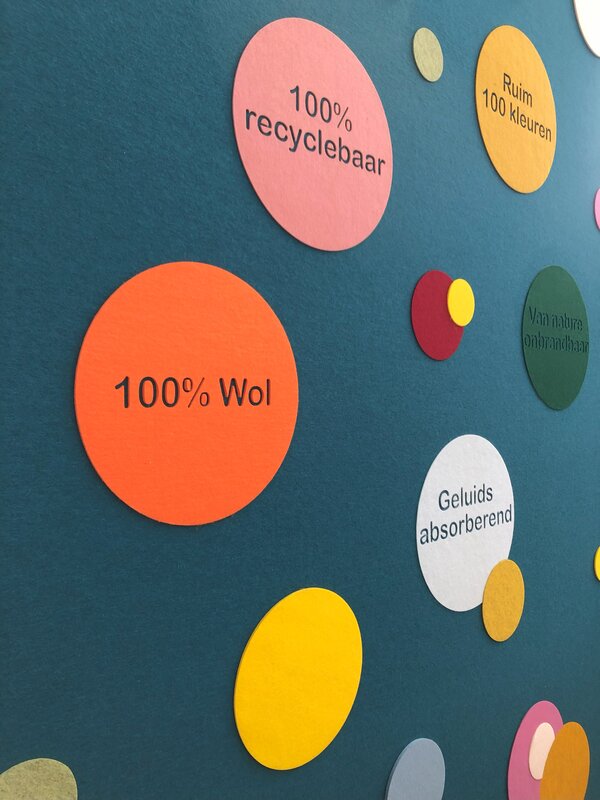 HOLLANDFELT als wandbekleding is het beste alternatief door zijn natuurlijke eigenschappen: Wolvilt is gemaakt van 100% wol, duurzamer kan niet! Het is volledig recyclebaar. Het wolvilt absorbeert geluid: 3 mm dik wolvilt van HOLLANDFELT kan een akoestische absorptie hebben tot 52%, bij 10 mm dik wolvilt loopt dit tot wel 100%.