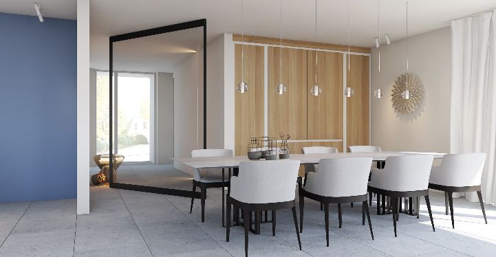 Nog een belangrijke pre van aluminium is dat het een lichtgewicht materiaal is. Het is 3x lichter dan staal, waardoor je de deuren heel soepel open- en dichtmaakt. Om dat te vergemakkelijken kun je kiezen voor een taatsdeur of pivotdeur. Dit is een deur zonder posten, die ‘los’ in de ruimte draait. Bijkomend voordeel is dat je dit type deur in twee richtingen kunt openen. Kies je voor een taatsdeur met aanslag, dan kan de deur in één richting geopend worden. Een ideale keuze voor gezinnen met kinderen, omdat de deuren in dat geval niet hard kunnen dichtklappen. Vormen de keuken en woonkamer één grote ruimte die wel wat meer sfeer kan gebruiken? Deel de kamer dan eenvoudig in tweeën met dubbele binnendeuren. Zo sluit je de ruimte af maar verlies je geen daglicht. Je scheidt de kamer op basis van de verschillende functies in een leef- en kookgedeelte en brengt de ruimte weer in verhouding. Door het glas blijven beide delen wel met elkaar verbonden.