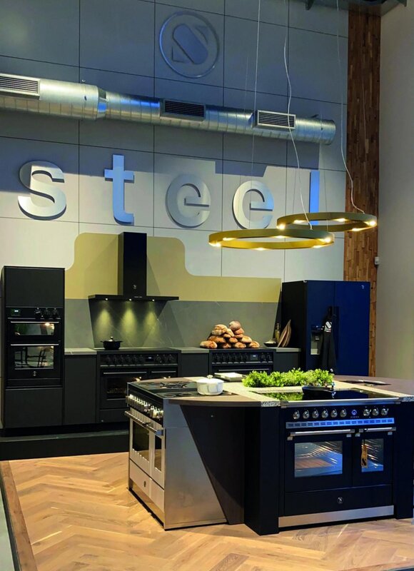 Een hedendaagse moderne keuken voorzien van de nieuwste kooktechnieken kan ook ergonomisch zijn, dachten ze bij Steel Cucine. Het Italiaanse bedrijf is gespecialiseerd in de ambachtelijke vormgeving van roestvrij staal, waarmee zij fornuizen, keukenapparatuur en buitenkeukens vervaardigt. Sinds kort zijn de vier designlijnen beschikbaar met de meest recente FLEXzone inductietechniek. Klassiek Ascot fornuis, Industrieel Genesi, Oxford exemplaar of een stoer doch sober en ingetogen Enfasi fornuis, ze combineren uitstraling en karakter met de nieuwste kooktechnologie. De Enfasi All Black doet dat tevens volledig in de trendkleur Nero Fumo (matzwart) en indien gewenst zelfs met een extra pizzaoven, inclusief pizzasteen, die een maximumtemperatuur van 315°C aankan.
