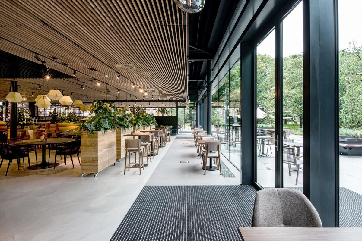 De wens van Kontakt der Kontinten was vrij duidelijk, Licht en lucht. Een goede combinatie tussen binnen en buiten, zodat je vanuit het restaurant kan genieten van de omgeving. Interior Glassolutions is gespecialiceerd in maatwerkoplossingen van glassystemen ten behoeve van interieurtoepassingen. ‘We bieden totaaloplossingen voor speciale glaswensen in huis of bij een project, waarbij we vanaf het begin ontwerp tot en met de calculatie, engineering en montage alles in eigen beheer hebben en meedenken,’ aldus Rob Helmons.