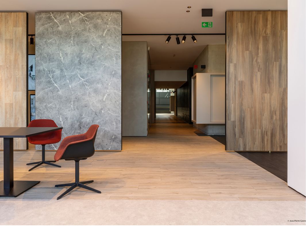 “Het Flooring Development Centre is een schitterend voorbeeld van hoe je in een pand architectuur en materialen kunt samenbrengen en combineren tot een esthetisch geheel dat de bedrijfsvisie uitdraagt”, concludeert Glenn. Bij IVC resulteert dit in een gebouw waar de internationale groep kan uitpakken met zijn innovatieve ontwikkelingen op het vlak van technologie, esthetiek, comfort en duurzaamheid.”