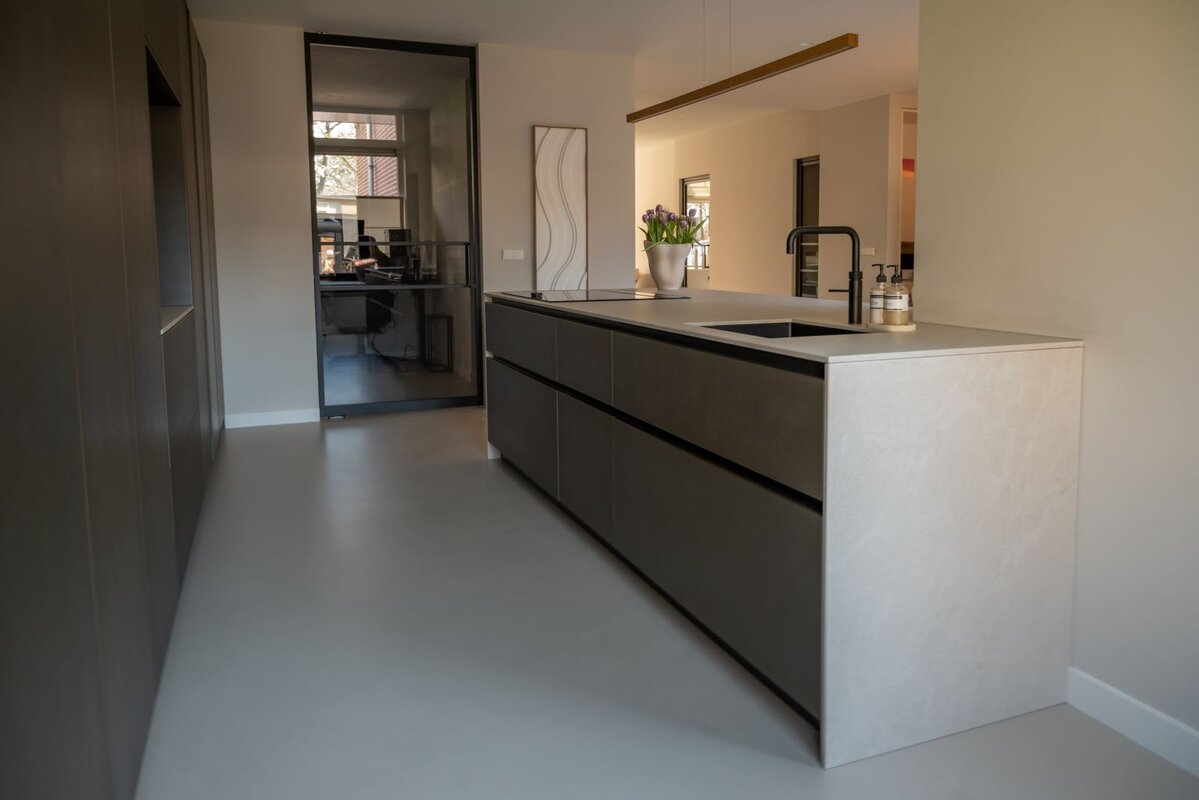Deze keuken past perfect in de trend van architecturale, exclusieve keukens: ontwerpen die niet alleen een functionele rol vervullen, maar ook als statement binnen het interieur fungeren. De strakke lijnen en het subtiele kleurenschema maken van deze keuken een tijdloos ontwerp. De strategisch geplaatste verlichting benadrukt de diepte en textuur van de materialen, waardoor de ruimte zowel overdag als ‘s avonds een elegante uitstraling heeft. Deze keuken is een voorbeeld van verfijnde eenvoud, waarbij elk detail met zorg is uitgewerkt.