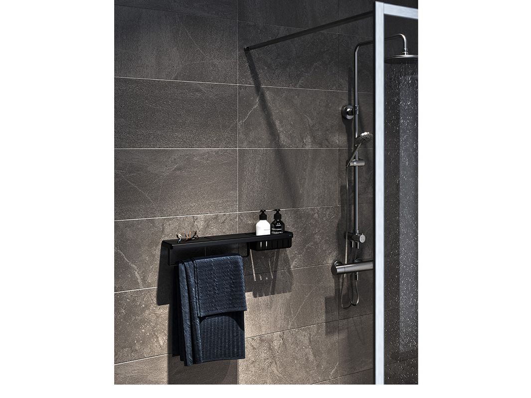 Geldrop, juni 2020 – De op de ISH 2019 gepresenteerde Frame badkameraccessoire-collectie van Geesa is uitgebreid met een Full Black variant. Frame Full Black is het antwoord op de voortdurende zwart trend in de badkamer. Waar eerder de planchetten van hoogwaardig kunststof al in het zwart mogelijk waren in combinatie met een chromen frame, is nu ook het chromen frame in het zwart te verkrijgen. Hierdoor is er een duidelijk zwart statement in de badkamer te maken. De serie biedt slimme en elegante opbergoplossingen door het combineren van functies binnen één accessoire. De naam dankt de collectie aan het frame, waarin kunststof planchetten in combinatie met andere accessoires zijn verwerkt. Het design is minimalistisch en de kunststof planchetten zijn uitneembaar. Hierdoor zijn deze gemakkelijk en hygiënisch schoon te maken. Door een subtiele afwatering zijn de planchetten en douchekorven van de slanke Frame collectie bij uitstek geschikt voor de bad- en doucheruimte. De populaire multifunctionele Frame collectie won in 2019 de iF Design Award.