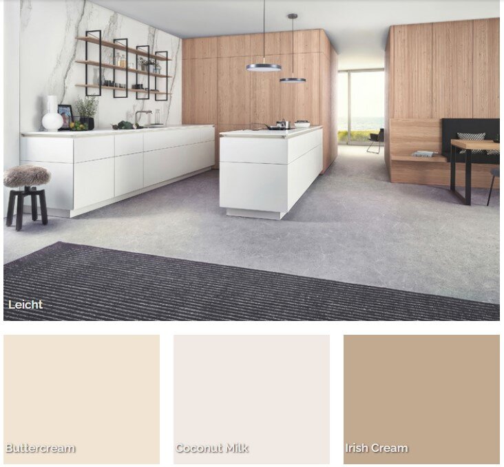 • Kies voor lichte, natuurlijke tinten als krijt, klei en zand voor fronten en wanden.