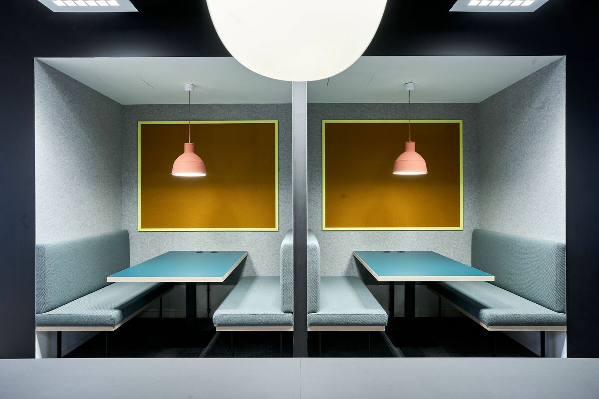 Lampenkappen & akoestische meubels en -panelenSpinlight, gespecialiseerd in lichtontwerp, heeft het akoestische probleem in de ruimte opgelost door lampenkappen dubbelzijdig te bekleden met Féline’s vilt. In dit project is gekozen voor een dubbellaminaat waarbij met dezelfde of verschillende kleuren vilt kan worden gewerkt. Zo ontstaat er op beide zichtzijdes van de kap een mooie en strakke viltafwerking.Om het akoestiek probleem op het kantoor van Enexus in Groningen op te lossen, heeft Keizer design speciale werkunits ontworpen en bekleed met ons vilt . Er is specifiek gekozen voor een dunne flexibelere vilt variant waarmee akoestische hoezen voor de werkstations zijn gemaakt. Hiermee kun je goed om panelen of meubels spannen.