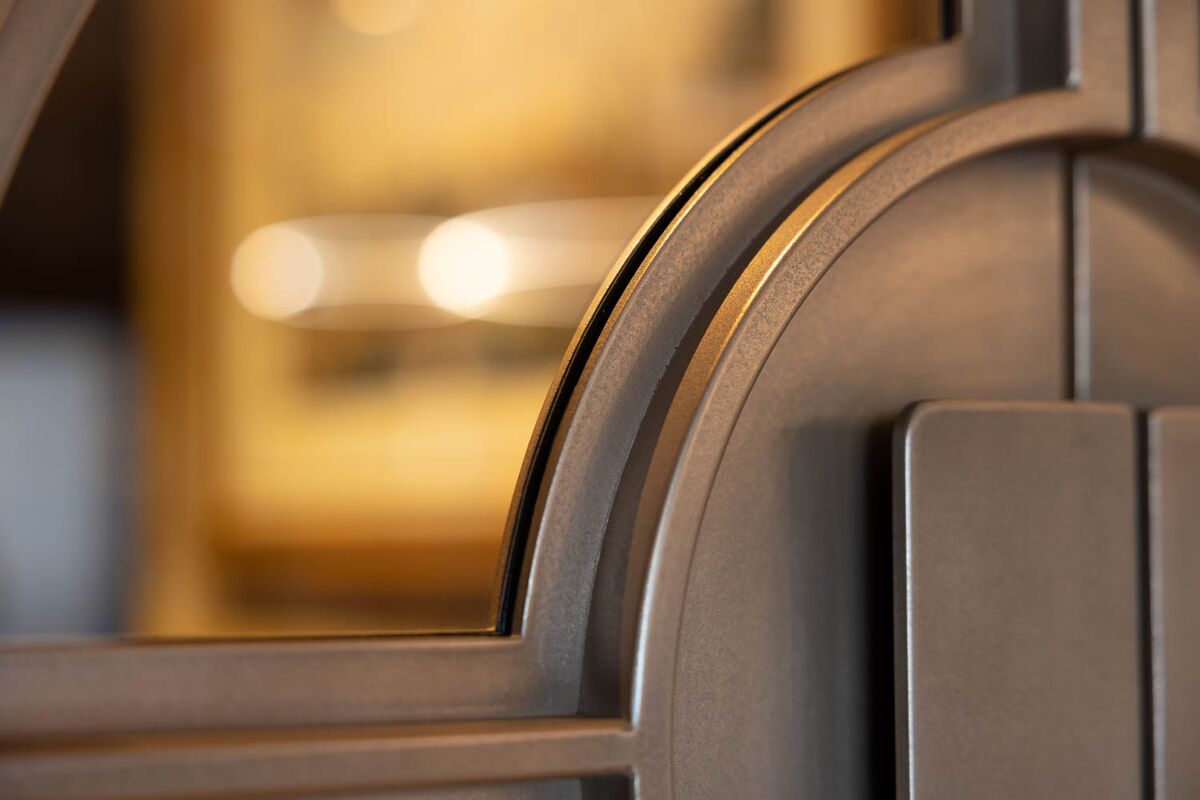 Direct bij binnenkomst van deze woning wordt u ondergedompeld in een rustieke oase van sfeer. Een huis dat voelt als thuis. Er is over elk detail nagedacht. Dit begint al bij de maatwerk vloer, die doorloopt in zowel de wanden als het plafond, tot aan het schitterende keukenblad. Harmonie in de hele woning. Zo ook de stalen deuren. De Rooy Steel Doors plaatste dubbele gepatineerde bronzen taatsdeuren en een dubbele schuifdeur met zijpanelen.