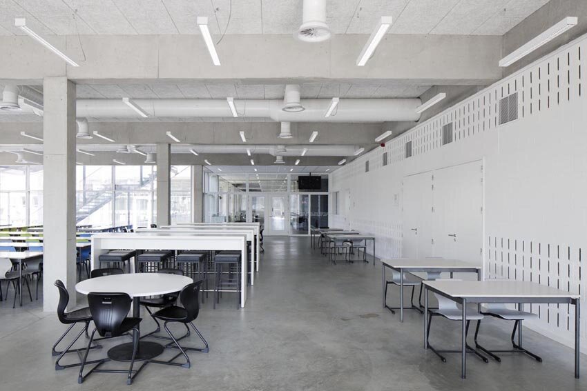 Een optimale akoestiek is cruciaal voor de ruimtebeleving zowel als voor de spraakverstaanbaarheid. In de kantine in de Kunsthumaniora te Hasselt zijn Soundblox ingezet om het overtollig geluid te absorberen en nagalm te reduceren. Studenten kunnen weer even tot rust komen en een hapje eten in een prettige sfeer die niets afdoet aan gezelligheid maar wel een uitstekende spraakverstaanbaarheid biedt.