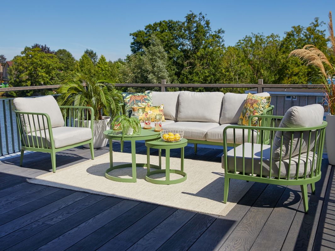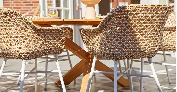 De mix van binnen en buiten is een trend die blijft. Indoor trends worden gekopieerd naar het buitenleven, de sfeer wordt doorgetrokken. Momenteel zien we de combinatie van loungen en dining volop. Daarom bieden we ook complementaire sets die onderling uitwisselbaar zijn. Ook de indoortrend van pastel en zachte gekleurde banken wordt voorzichtig doorgetrokken naar buiten in de nieuwe all-weather collectie.