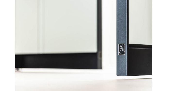 Kiest u voor stalen deuren van De Rooy Metaaldesign? Dan heeft u een grote diversiteit aan keuzes. Zo kunt u zelf het draaimechanisme en de handgreep kiezen. Zoals in dit project blijkt, kunt u ook kiezen voor getint glas of matglas. Of wat dacht u van leer in plaats van glas? Ook dat is mogelijk.