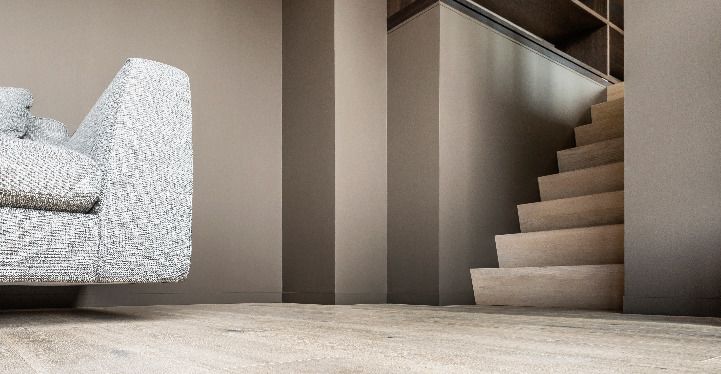 De eigenaars van deze privéwoning in Waregem gingen uit van een strak interieur, waar deuren onzichtbaar opgaan in de wanden en plinten geen onnodige aandacht trekken. Het resultaat is een mix van onzichtbaar ingewerkte draai-, pivot- en schuifdeuren die de minimalistische look nergens verstoren. Meer nog: met ook plinten die nauwelijks opvallen, gaf interieurarchitect Thomas Nachtergaele op dat vlak geen duimbreed toe.