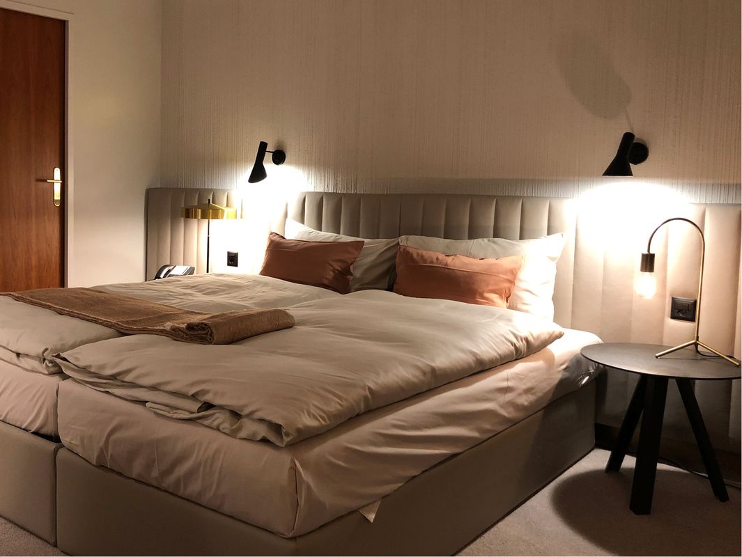 This is the case of the completely tailor made project created for the Kongress Hotel Davos Platz in Switzerland and designed by the architect Alexander Wilhelm. Here, for the restyling of the rooms, the Haiti bed has been specially integrated with a customized headboard; in addition, a special ottoman has been made to design.