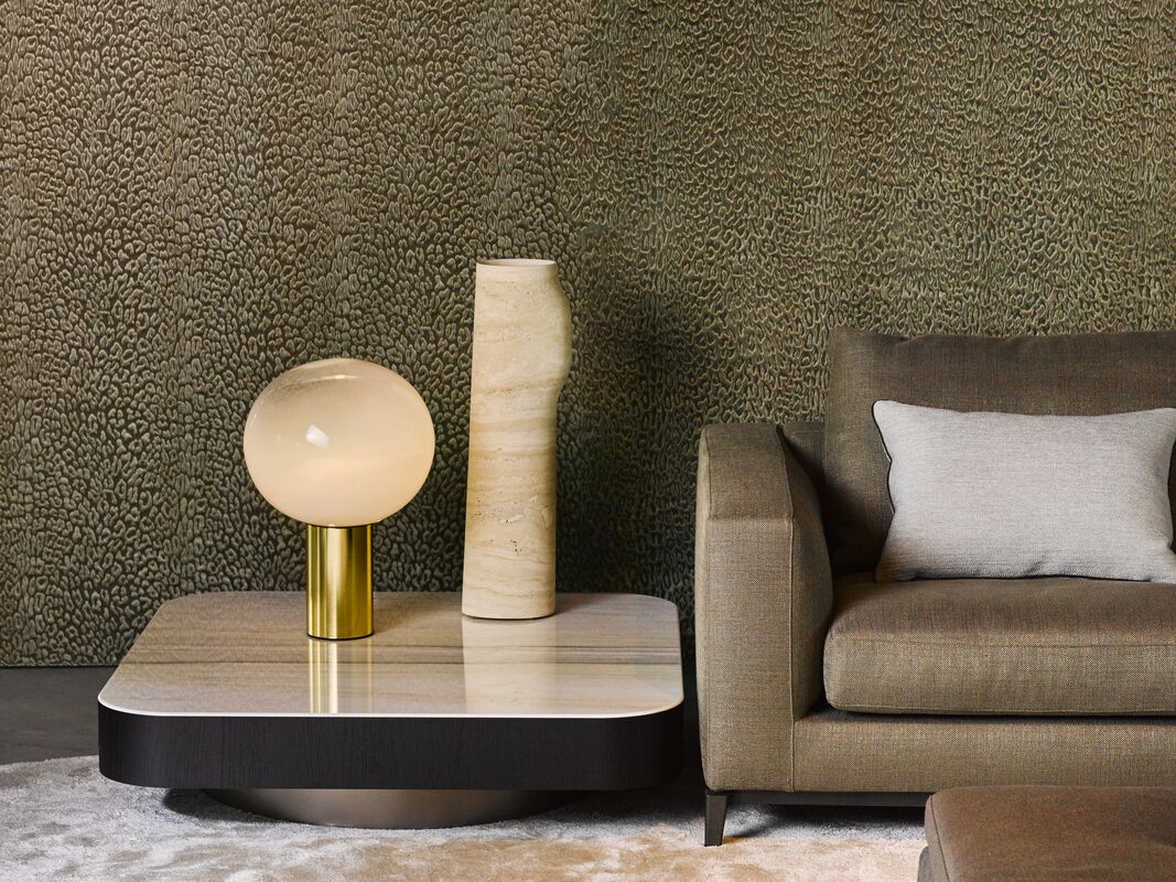 De nieuwste Ocean Bay collectie omvat Grunge velours wandtextiel. dit heerlijk zachte fluweel met luxeuitstraling, kenmerkt zicht door een opvallend grafisch design dat is geïnspireerd op de textuur van uitgedroogde klei.